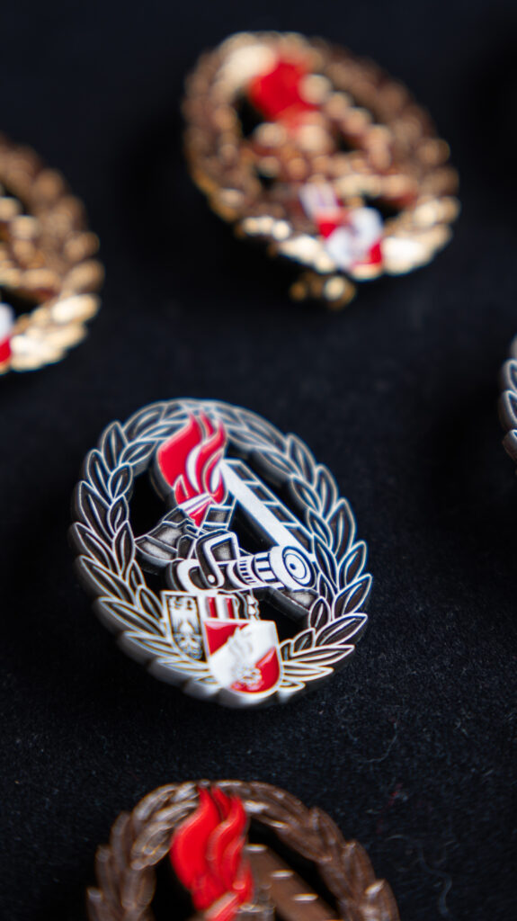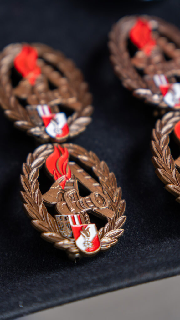Nach erfolgreichem Absolvieren bekamen die Teilnehmer die Abzeichen von den Prüfern des Bezirksfeuerwehrkommandos überreicht.