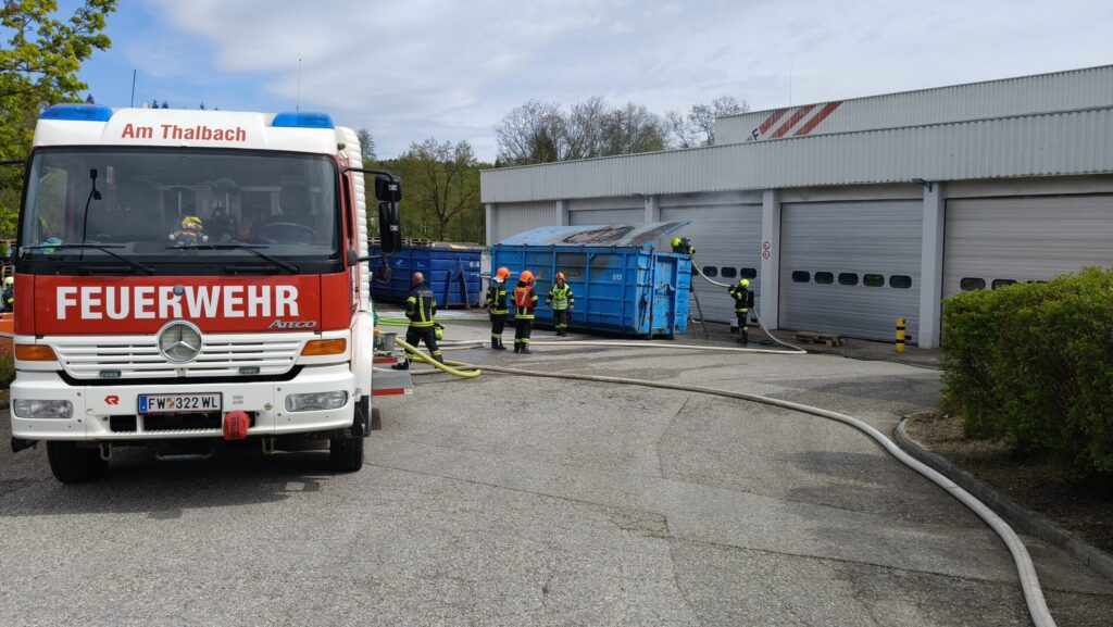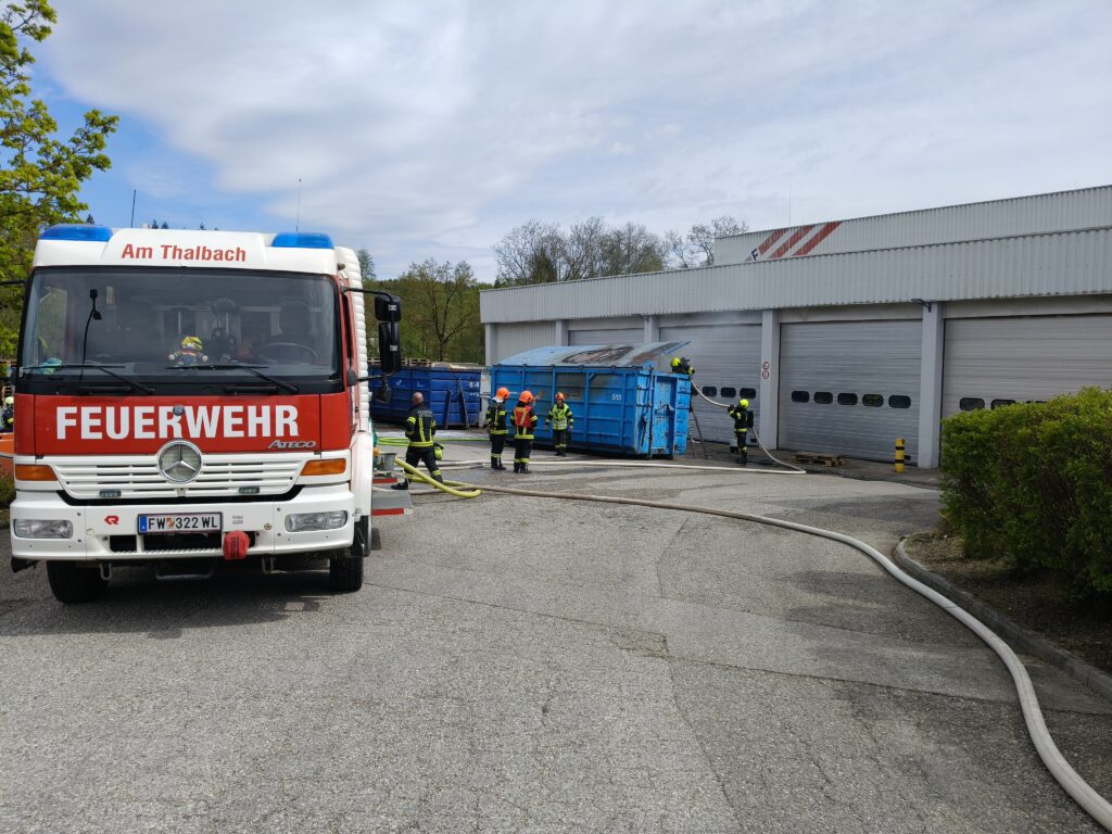23. April 2026Kurz vor 14 Uhr wurden wir mit dem Einsatzstichwort „Brand Abfall im Freien“ alarmiert. Beim Eintreffen stand ein Müllcontainer, gefüllt mit Kartonagen, aus bislang unbekannter Ursache in Brand.