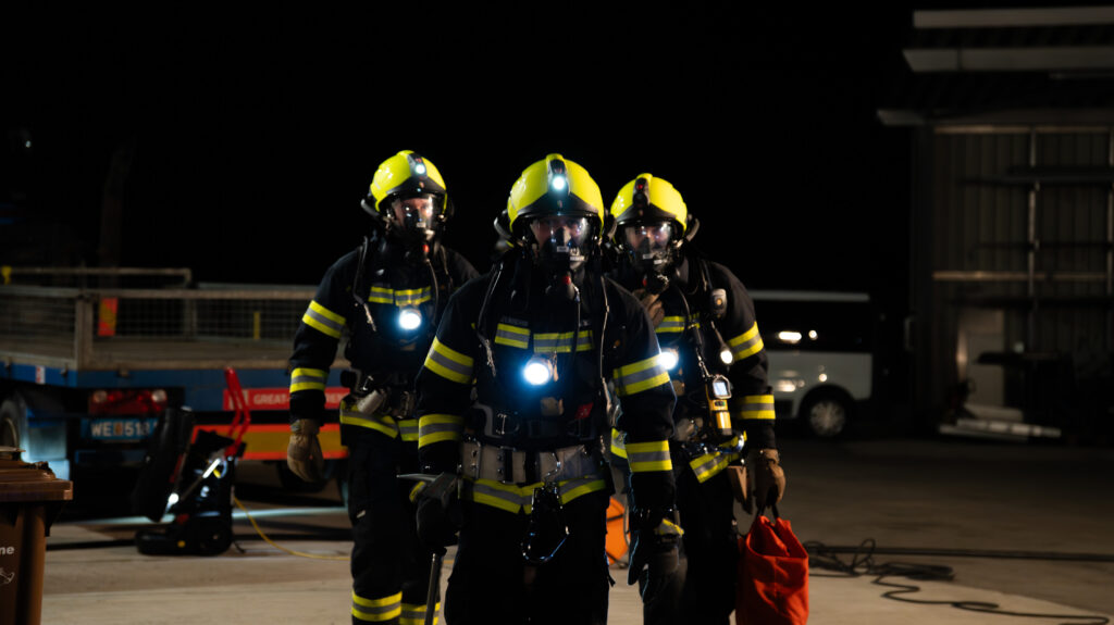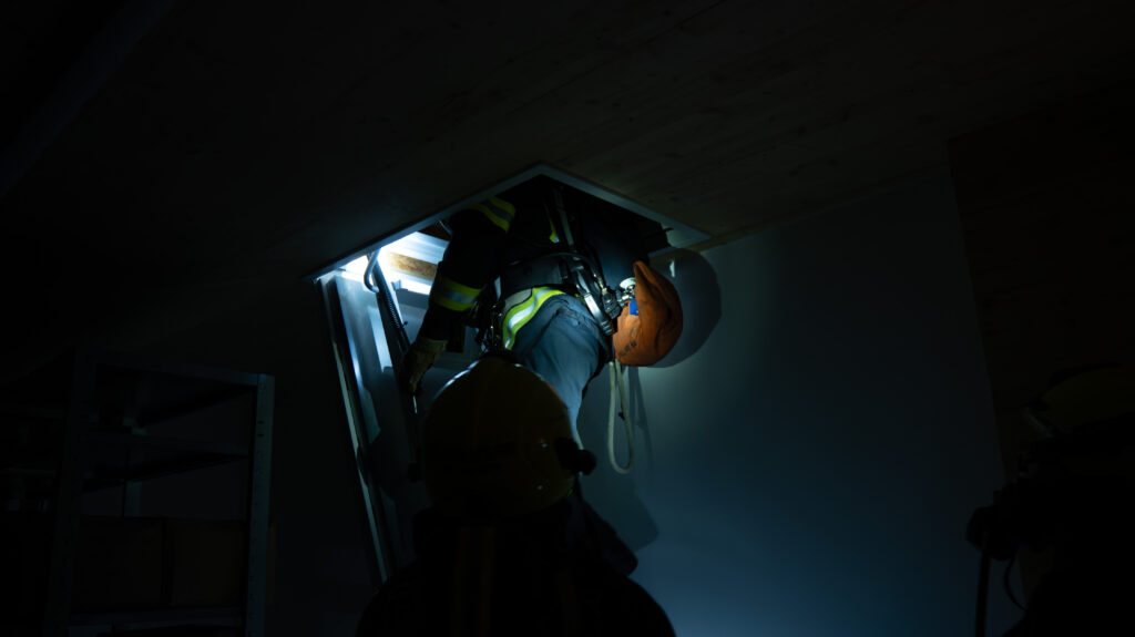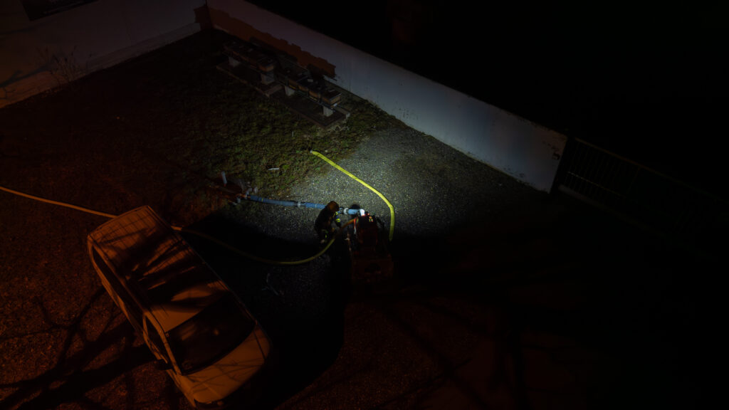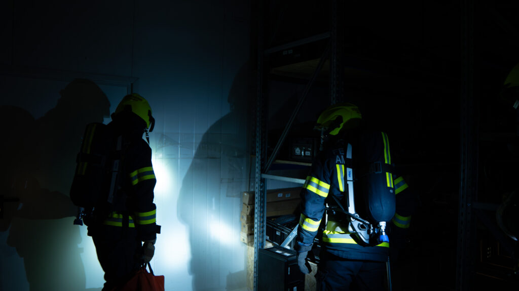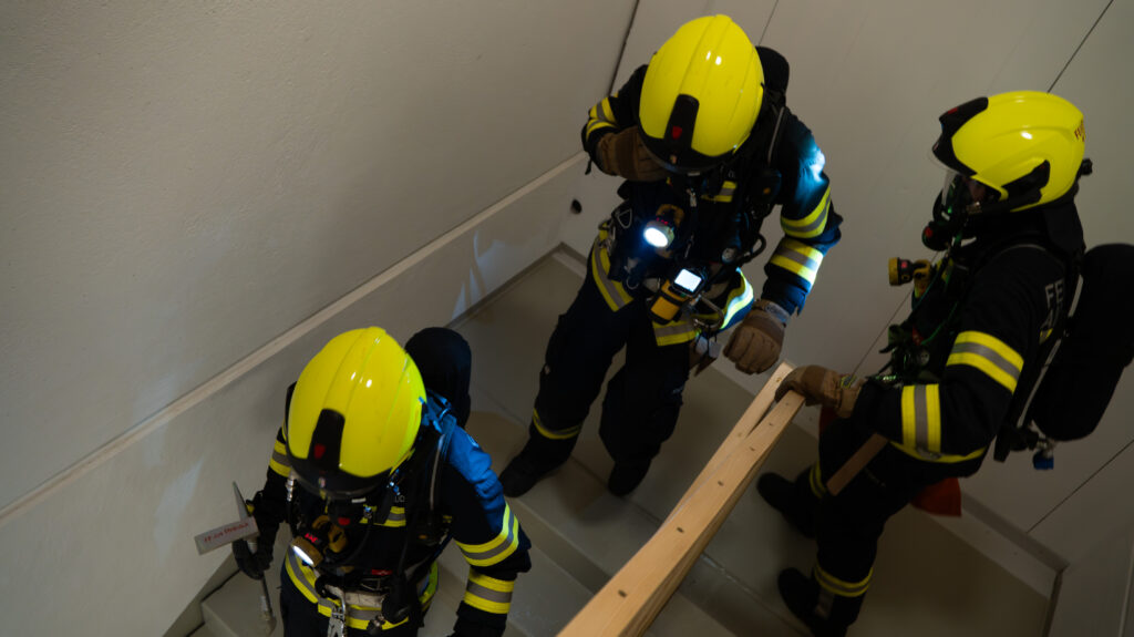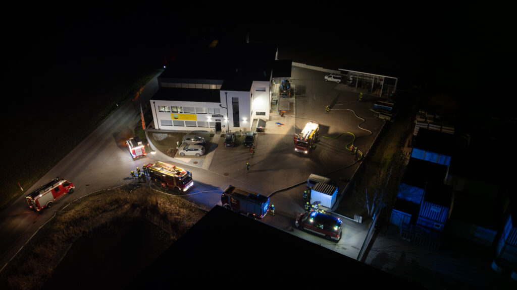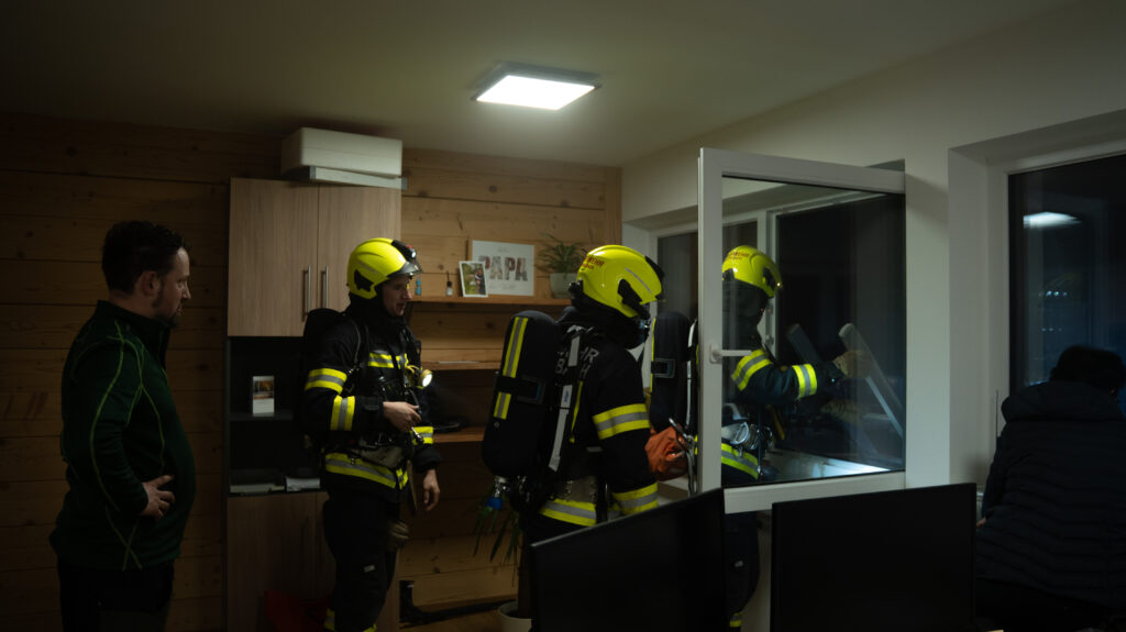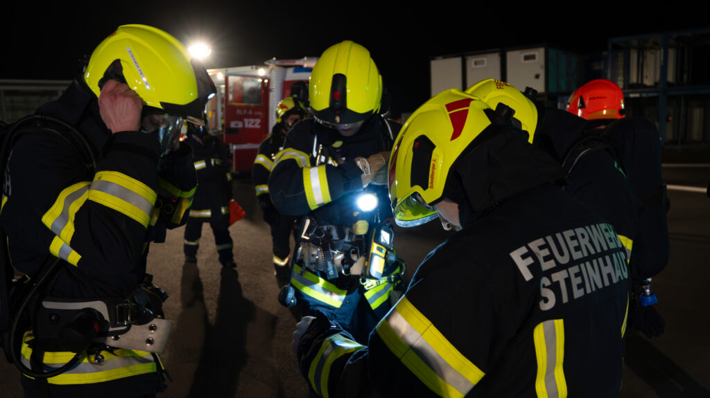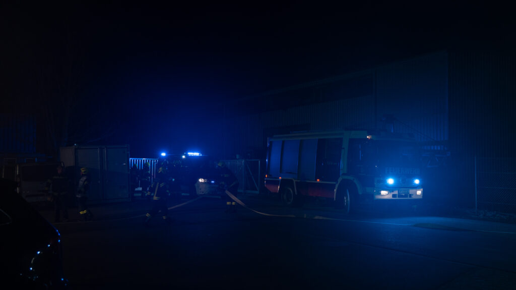 Gemeinsam arbeiteten wir ein Übungsszenario mit dem Einsatzstichwort „Brand Gewerbe“ ab. Annahme war, dass ein Brand in einer Werkstatt ausgebrochen sei und sich zudem noch Personen im Gebäude befinden.